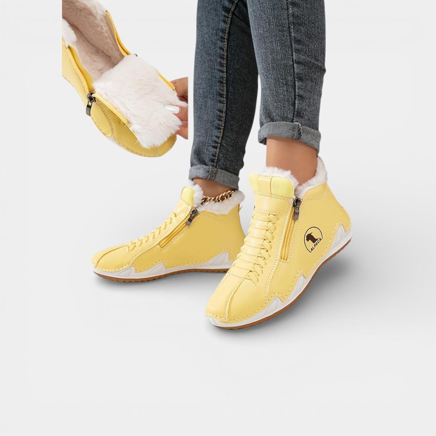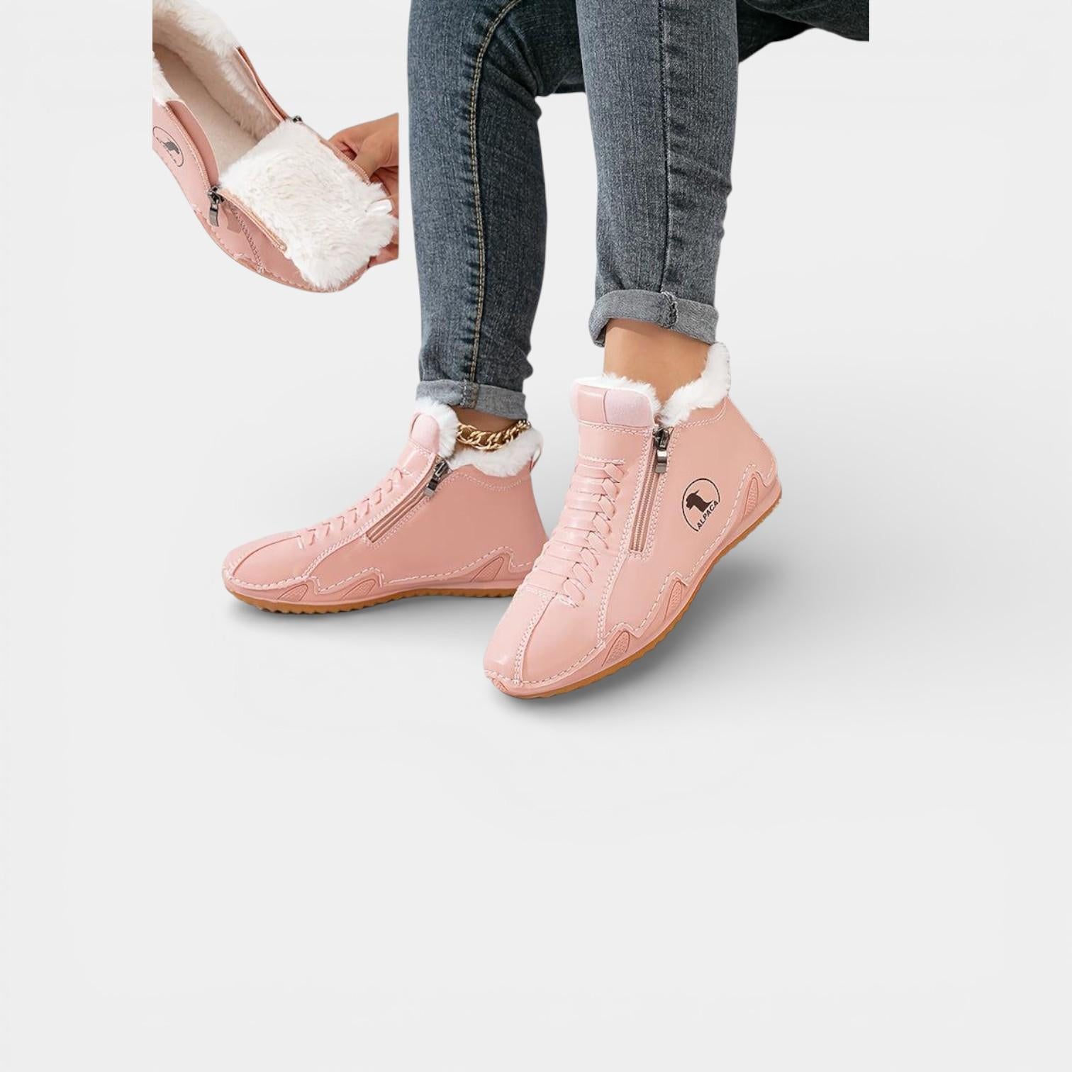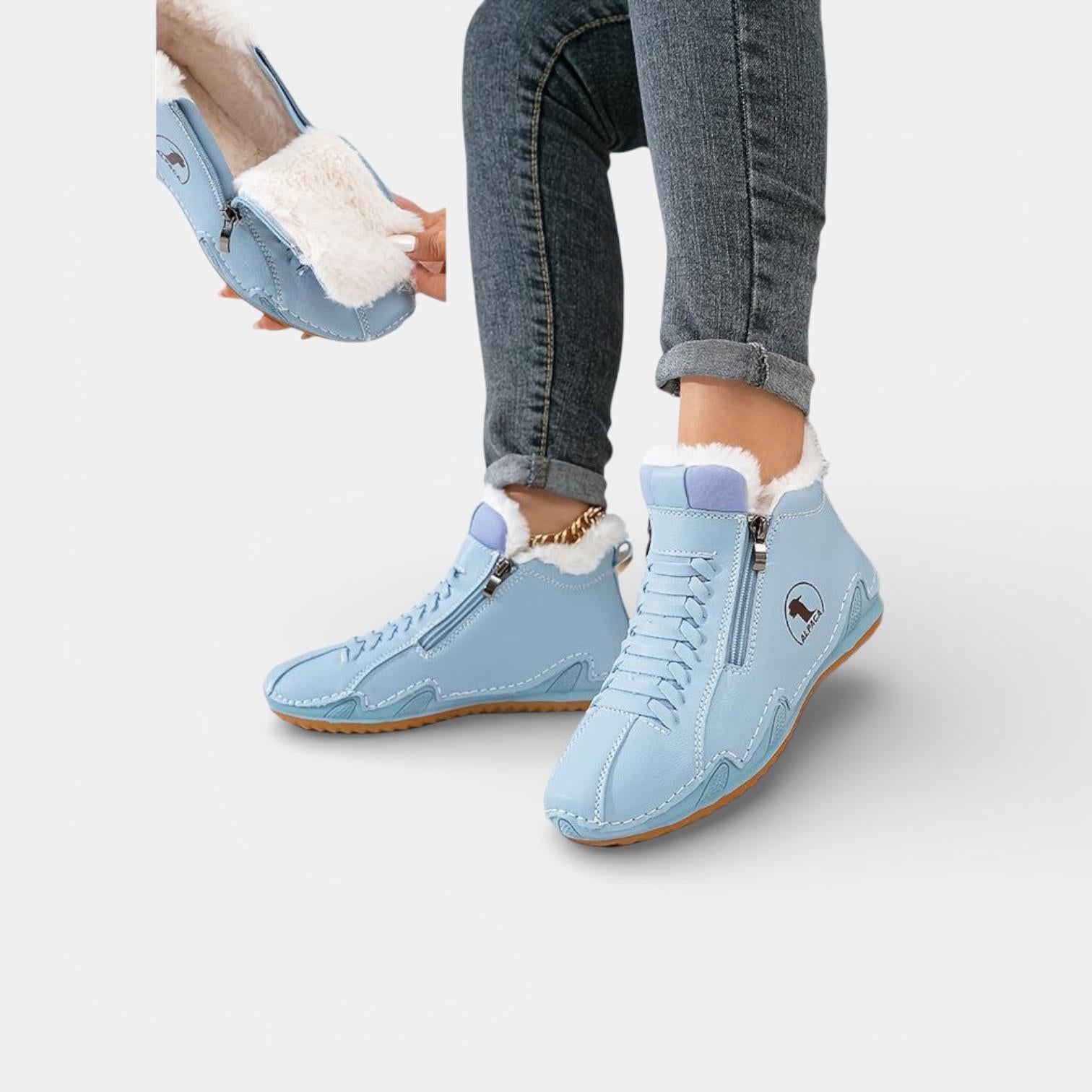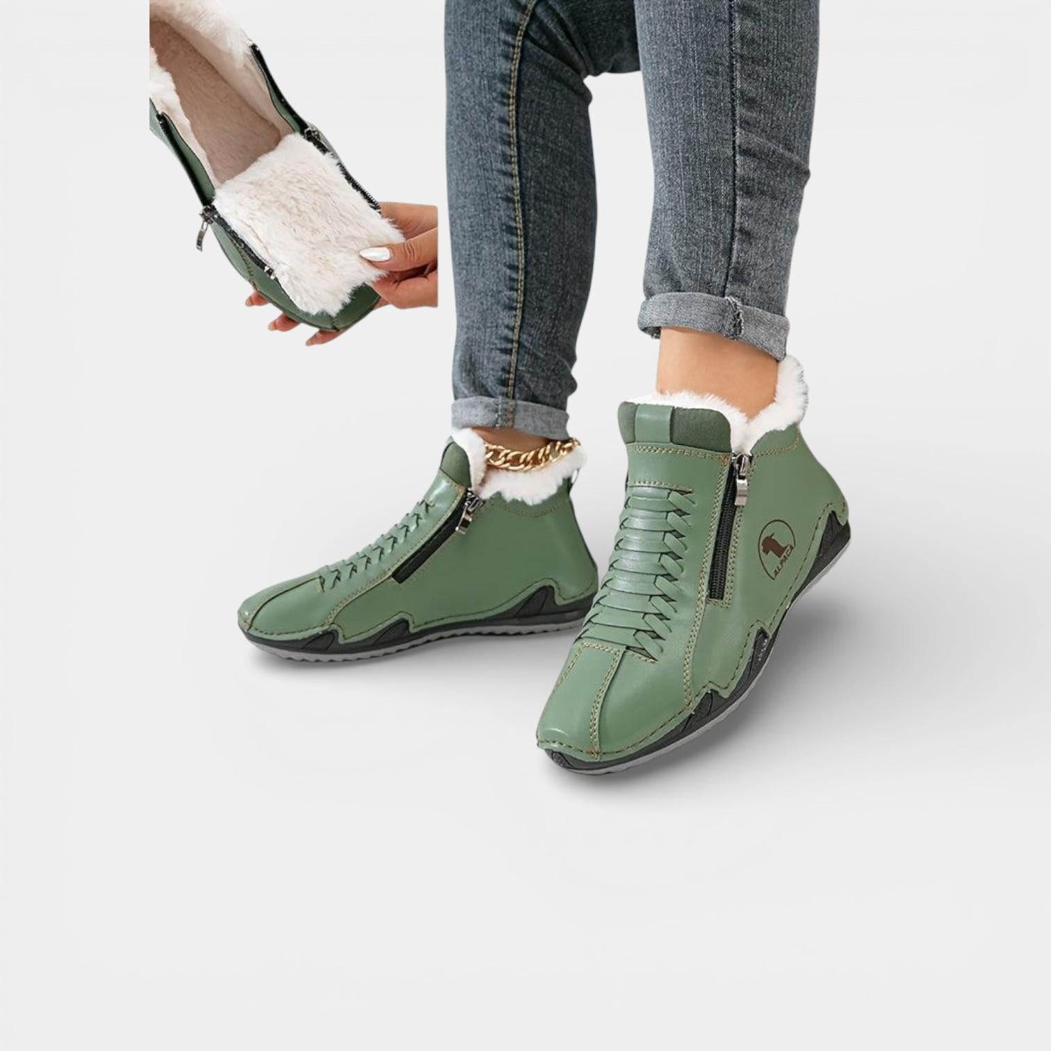Discover Lea — therapeutic winter ankle boots specially designed for women over 50 with sensitive feet: bunions, plantar fasciitis, hallux valgus, heel pain, swelling, and more.