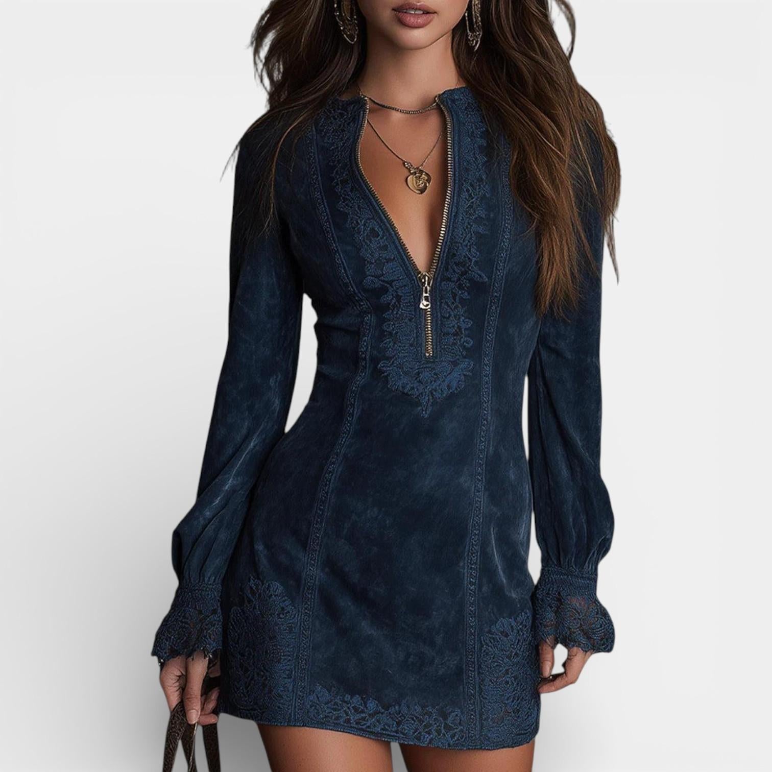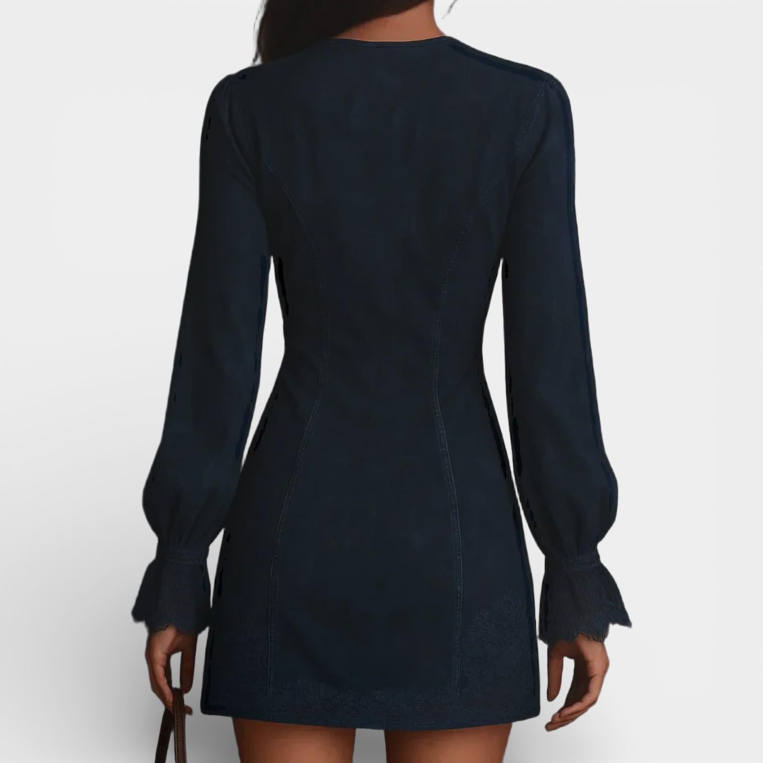 Jasmine – Blue Suede Mini Dress with Lace